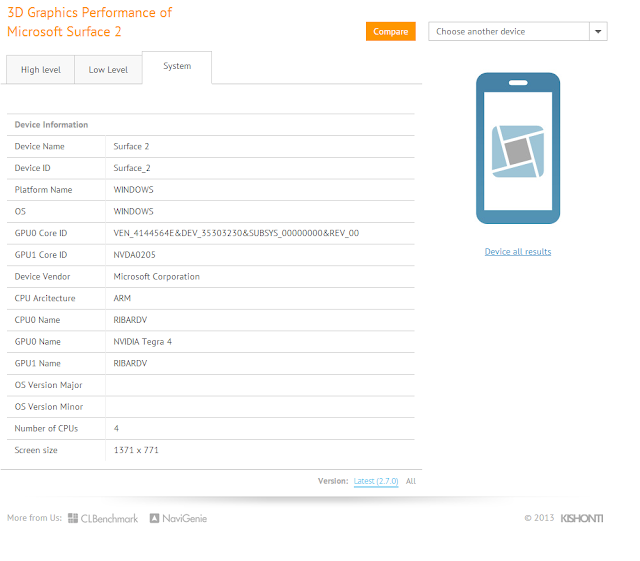 Another unannounced device has just popped up on GFXBench's online database, and this time it's Microsoft's Surface 2 tablet.